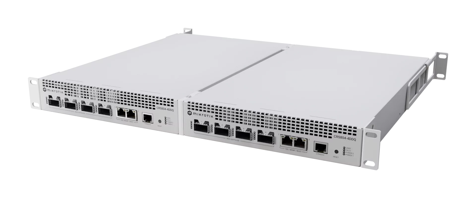 A compact 1U 400G switch built for AI clusters, storage fabrics, and high-speed aggregation, featuring four 400G QSFP56-DD ports, dual 10 Gigabit Ethernet, and RouterOS v7. With hot-swap power supplies, robust cooling, and low power consumption, it delivers ultra-high bandwidth, wire-speed performance, and future-proof scalability at an accessible price point.